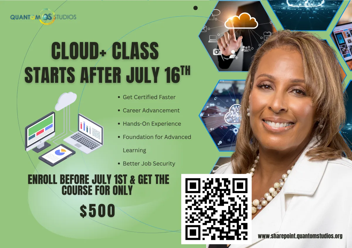 create and manage SharePoint sites, set permissions, build document libraries, automate workflows, and leverage team collaboration tools. On top of that,Cloud+ training gives you foundational knowledge in cloud infrastructure, security, and virtualization, making you a versatile asset in today’s cloud-first world.
